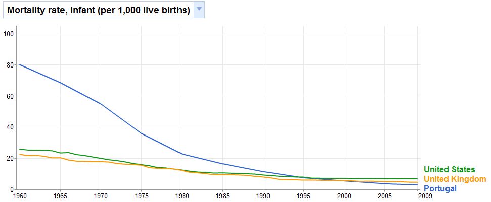 a lei dos rendimentos decrescentes torce o nariz a estes resultados. tem custos económicos exorbitantes salvar todos os recém-nascidos com malformações e problemas graves de saúde (afinal cada ser é uma combinação genética singular e ao mesmo tempo uma “experiência” da “Ana Tereza”) . vamos acabar em quê, com milhares e milhares de euros por parto (em vez das centenas de euros de uma parteira, uma certa selecção natural e alguma qualidade de vida para a mãe e o filho) e no limite, 3 por mil recém-nascidos ligados a máquinas de apoio de vida desde o nascimento?