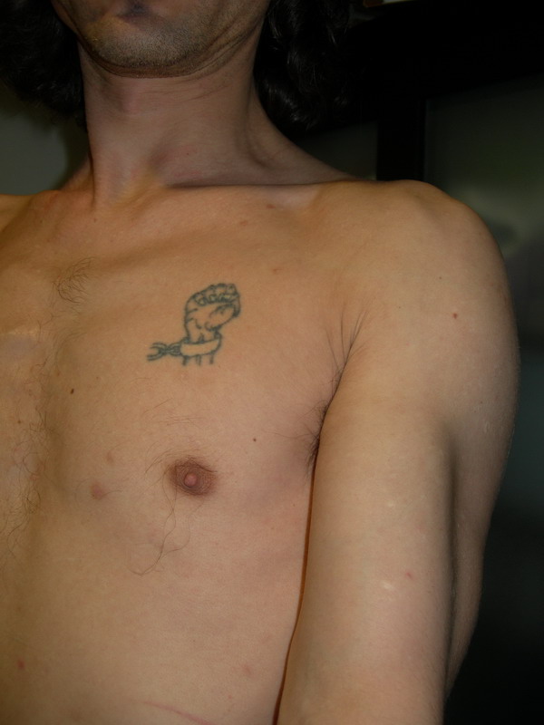 — Não, dessa vez não tinha dinheiro. Mas voltei lá, nunca mais esqueci o desenho. Voltei até várias vezes mas nunca o fazia; ou porque a casa estava fechada ou por causa do sol e do mar nunca fiz a tatuagem. Finalmente numa Primavera, uns 10 anos depois, fiz aqui o boneco que você viu. Fi-lo com a promessa de acrescentar um elo à cadeia a cada compromisso que aceitasse da vida. Um casamento, um filho, uma casa, sei lá uma prisão qualquer, pumba, mais um elo, até que não houvesse corpo para tatuar elos!